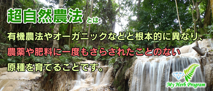 マイハーブプログラムの特徴の一つ、完全無農薬・原種メディカルハーブは、「超自然農法」という方法で作られています。